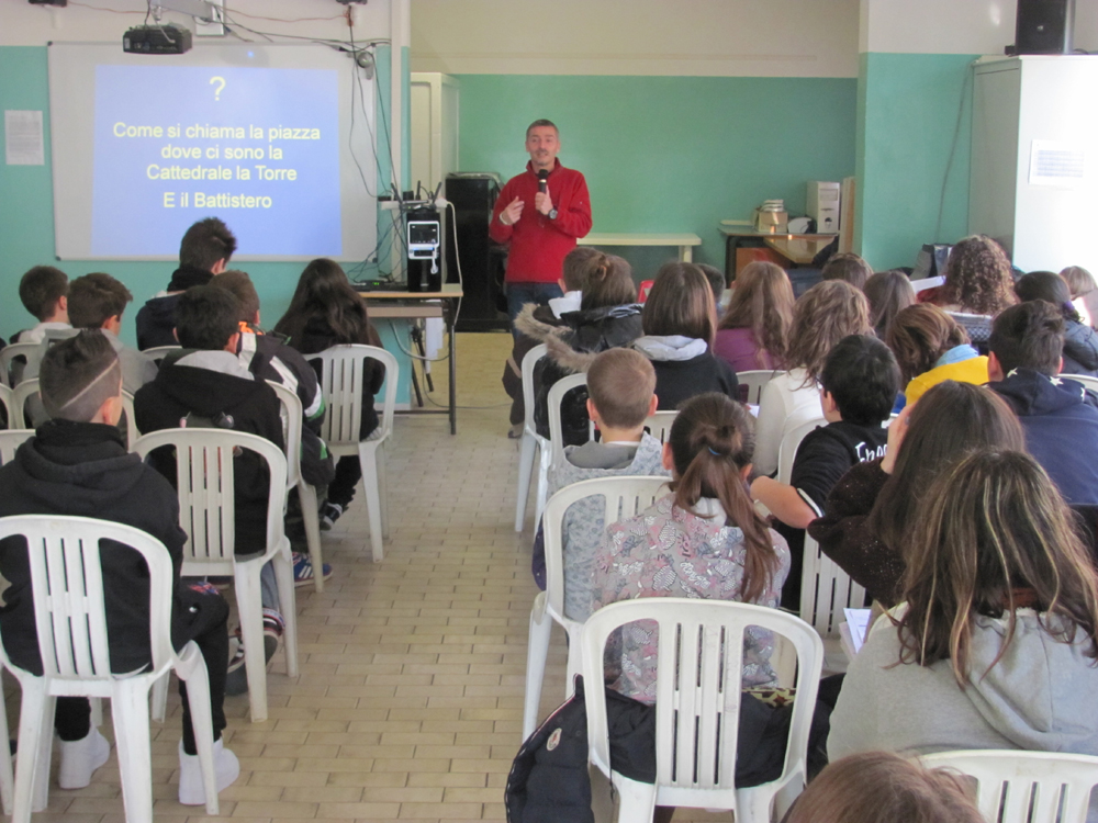La mattina di sabato 16 febbraio gli alunni delle classi seconda A e B della nostra scuola media hanno assistito a una lezione dello scrittore Sergio Costanzo, autore di romanzi storici ambientati a Pisa in epoca medioevale e moderna (ricordiamo qui Io Busketo e Il fiume si rise). Costanzo ha spiegato ai ragazzi l’evoluzione urbanistica della città e delle sue zone vicine dall’anno 1000 alla fine del ‘400; utilizzando una interessantissima documentazione esemplificata attraverso il computer, lo scrittore ha accompagnato i ragazzi in un viaggio nel tempo fantastico (ma rigorosamente storico) tra le strade di Pisa e tra i suoi monumenti più importanti, spiegando anche l’origine di nomi di molte località geografiche della nostra zona. Il nostro istituto ringrazia Sergio per la sua disponibilità, per la sua competenza e per la passione per la storia che sa trasmettere a chi lo ascolta, adulti e ragazzi.