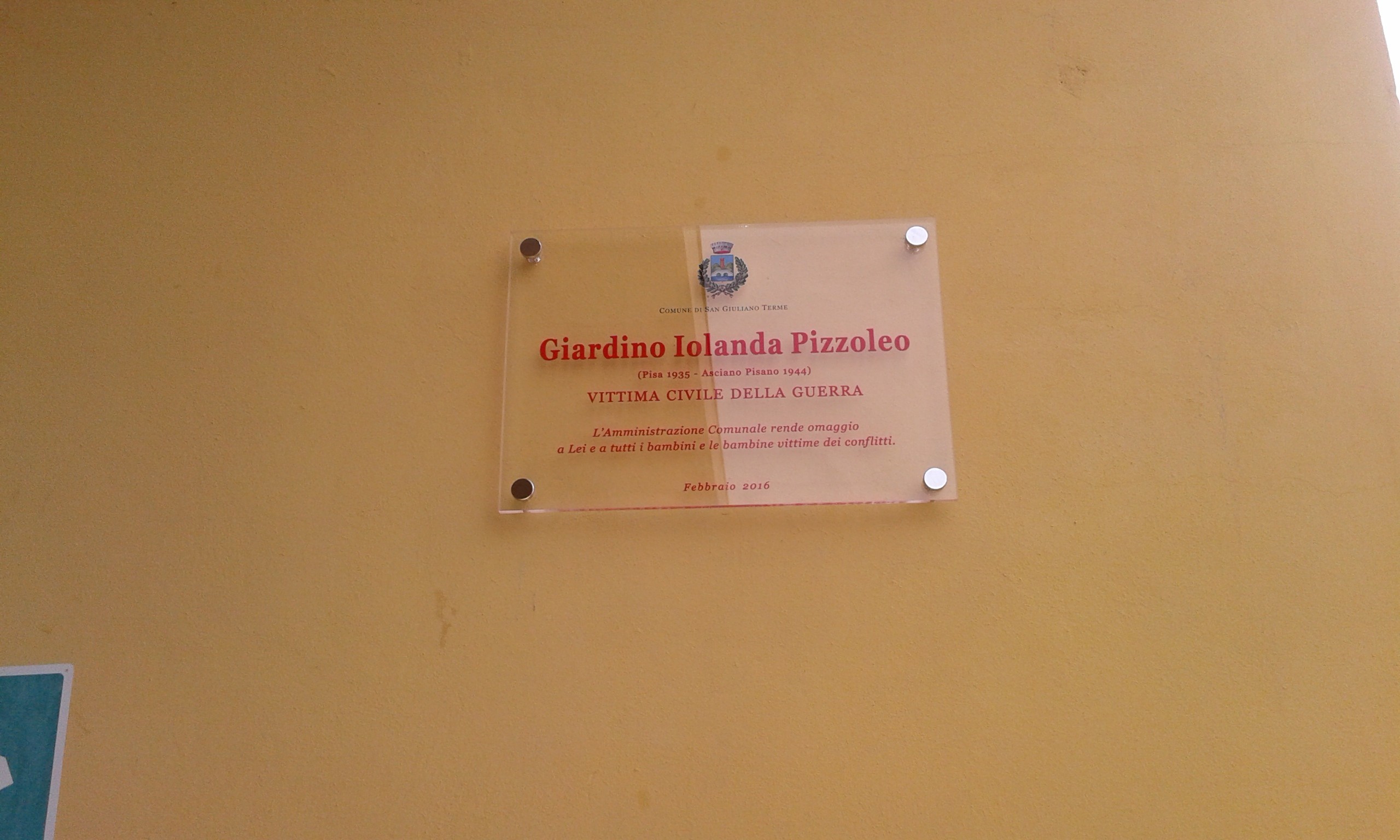 Sabato 2 aprile ha avuto luogo la cerimonia di intitolazione del giardino della scuola primaria “L. Rosati” di Asciano a Iolanda Pizzoleo, vittima a soli 9 anni della follia della guerra. Iolanda perse la vita il 24 luglio 1944 durante uno scontro a fuoco tra partigiani e nazisti