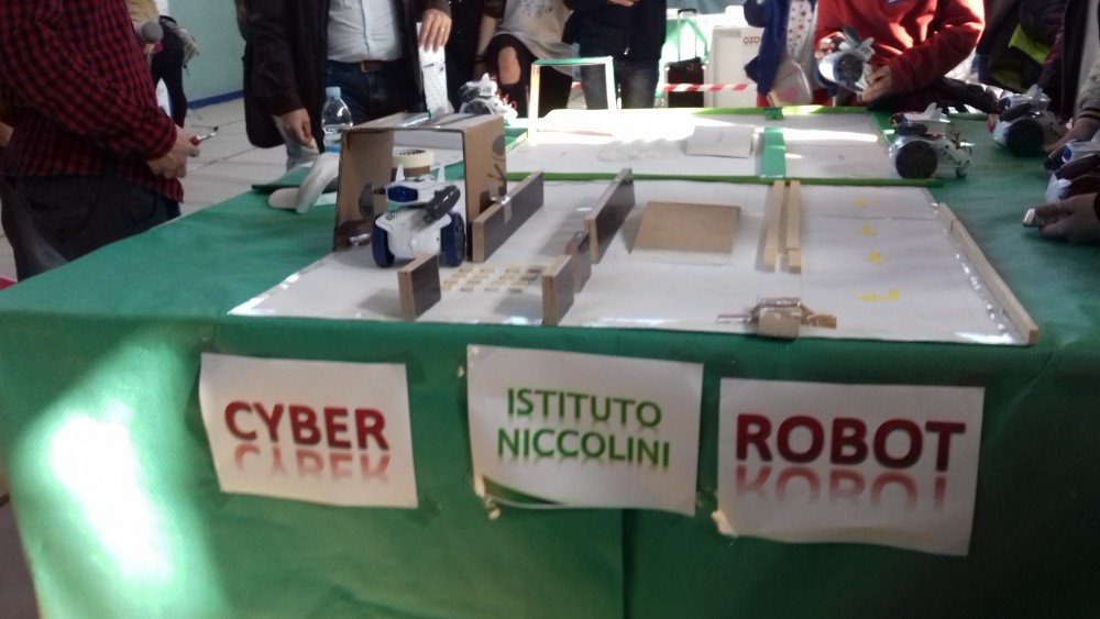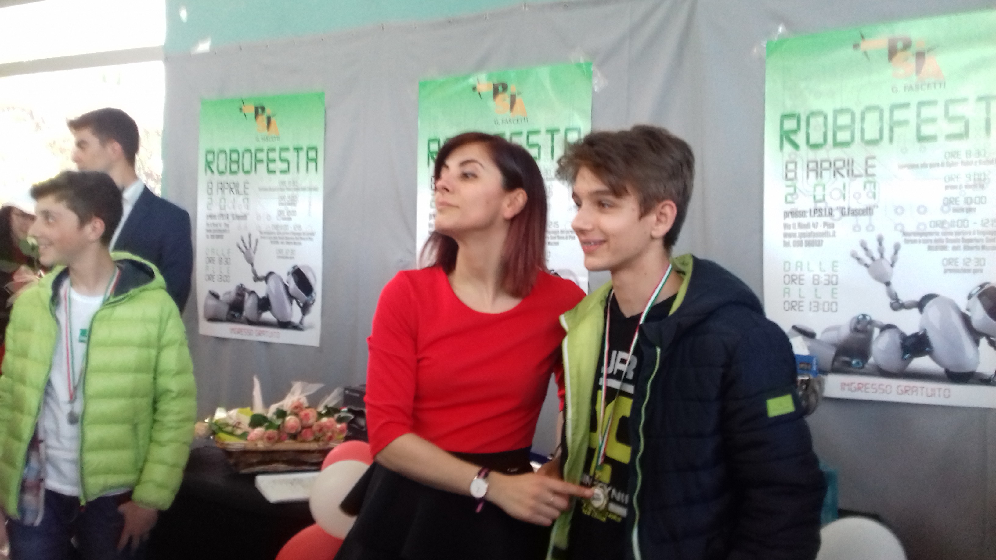 Gli alunni del laboratorio di Robotica, con gli insegnanti proff. Lucia D’Avino e Giuseppe Capuano e l’Animatrice Digitale Simonetta D’Atri, hanno partecipato sabato 8 aprile alle gare con Cyber Robot all’interno della manifestazione Robofesta 2017 organizzata dall’IPSSIA Fascetti di Pisa. Questo è stato l’evento conclusivo di un percorso didattico in collaborazione con l’IPSIA Fascetti proposto e condotto dal prof. Luciano Bartalini, che ha visto il coinvolgimento dei ragazzi di 6 scuole secondarie di 1° grado del territorio: “G. Toniolo”, “R. Fucini” e “G. Gamerra” di Pisa, “Giunta Pisano” di Calci, “N. Mandela” di San Giuliano Terme ed “E. Fermi” di Pontasserchio. Obiettivo di questa collaborazione è stato dimostrare come il valore educativo della robotica possa essere uno stimolo all’innovazione, alla cooperazione e alla condivisione, ma anche alla progettazione, alla risoluzione di problemi, allo sviluppo delle capacità creative. I nostri alunni, in particolare, hanno progettato una pista dove si sarebbe dovuta svolgere la gara dei Cyber Robot elaborando il relativo regolamento. Hanno illustrato le loro idee agli esponenti delle 6 scuole che, alla fine, hanno scelto il loro Progetto per la realizzazione della pista per la gara ufficiale, pista che è stata poi realizzata dai ragazzi con l’aiuto dei loro insegnanti. Gli alunni Lorenzo Era e Pietro Senatore sono stai premiati per questo loro Progetto alla fine della manifestazione. Premiati anche Antonio Stumpo 2° classificato alla gara dei Cyber Robot, Tommaso Amoddio 5° classificato e Lorenzo Era 6° classificato su 23 partecipanti. Un ulteriore premio è andato all’Istituto Comprensivo “G. B. Niccolini” fortunato nel sorteggio di un Tablet tra le sei scuole partecipanti al progetto di Robotica.