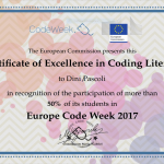 La scuola primaria Dini/Pascoli riceve dalla Commissione Europea il Certificato di Eccellenza in Coding Litteracy, quale riconoscimento per aver coinvolto almeno il 50% degli alunni delle scuole nella Code Week 2017. In tale settimana, gli alunni della scuola primaria Dini e scuola primaria Pascoli coinvolti dalla loro insegnante hanno realizzato codici con la pixel art. Gli alunni hanno […]