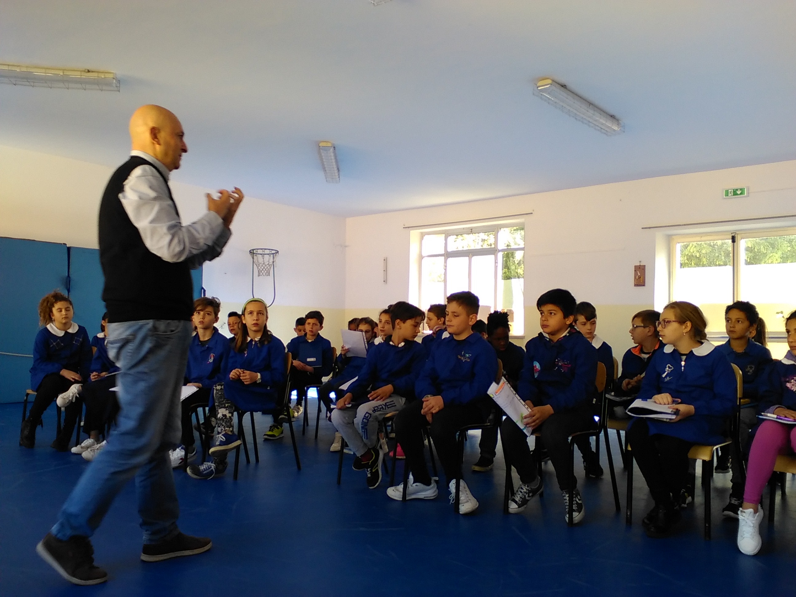 Sono le impressioni che ha suscitato nei giovani allievi delle classi 4° /IV A, IVB e VB del Plesso/primaria Licia Rosati di di Asciano, Fabrizio Altieri, “un bambino diventato adulto, che poi torna bambino tra i bambini”.