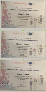 La scuola Dini/Pascoli, con le classi 1^ Dini, 1^ Pascoli e 4^ Dini, ha ricevuto dalla Commissione Europea un “Certificato di eccellenza nell’alfabetizzazione informatica” e sarà menzionata sul sito ufficiale di Europe Code Week.
