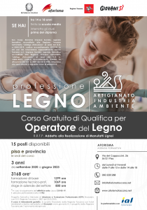 I.e.F.P. professione LEGNO NOVITA’!!!!!!!!durata del corso : settembre 2020 – giugno 2023 |
